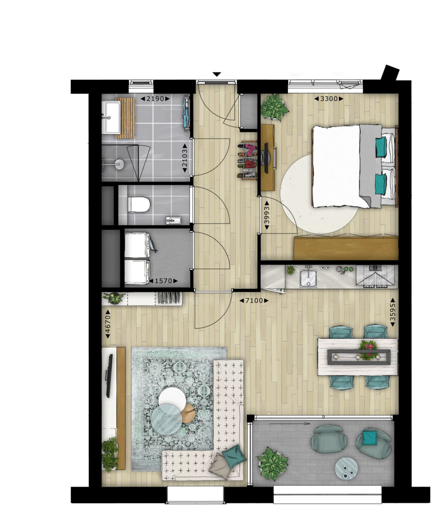You will undoubtedly like the design of the building, but also the finish! After all, all apartments are delivered complete with a beautiful kitchen, luxury bathroom with walk-in shower and a stylish PVC floor with wood motif. This makes Bartok a great asset to the culture square, where Rozet is also located. Here you will find the Library, the Volksuniversiteit, the Heritage Center, Kunstbedrijf Arnhem, Kunstuitleen To-ART and café-restaurant Momento. Together with the residents, knowledge is shared, deepening offered and artistic and intellectual stimulation is facilitated.