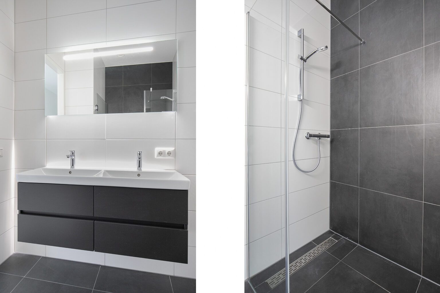 Ook de badkamer is luxe afgewerkt met smaakvol sanitair van Villeroy & Boch. ’s Morgens wakker worden en je tanden poetsen aan de wastafel met onderkast, handig voor het opbergen van toiletspullen. Tijdens een slaperig moment oppassen dat je je voet stoot bij het betreden van de douche? Niet nodig dankzij de inloopdouche met vlakke vloer én moderne drain. Alles oogt daarbij stijlvol en modern – helemaal van deze tijd!