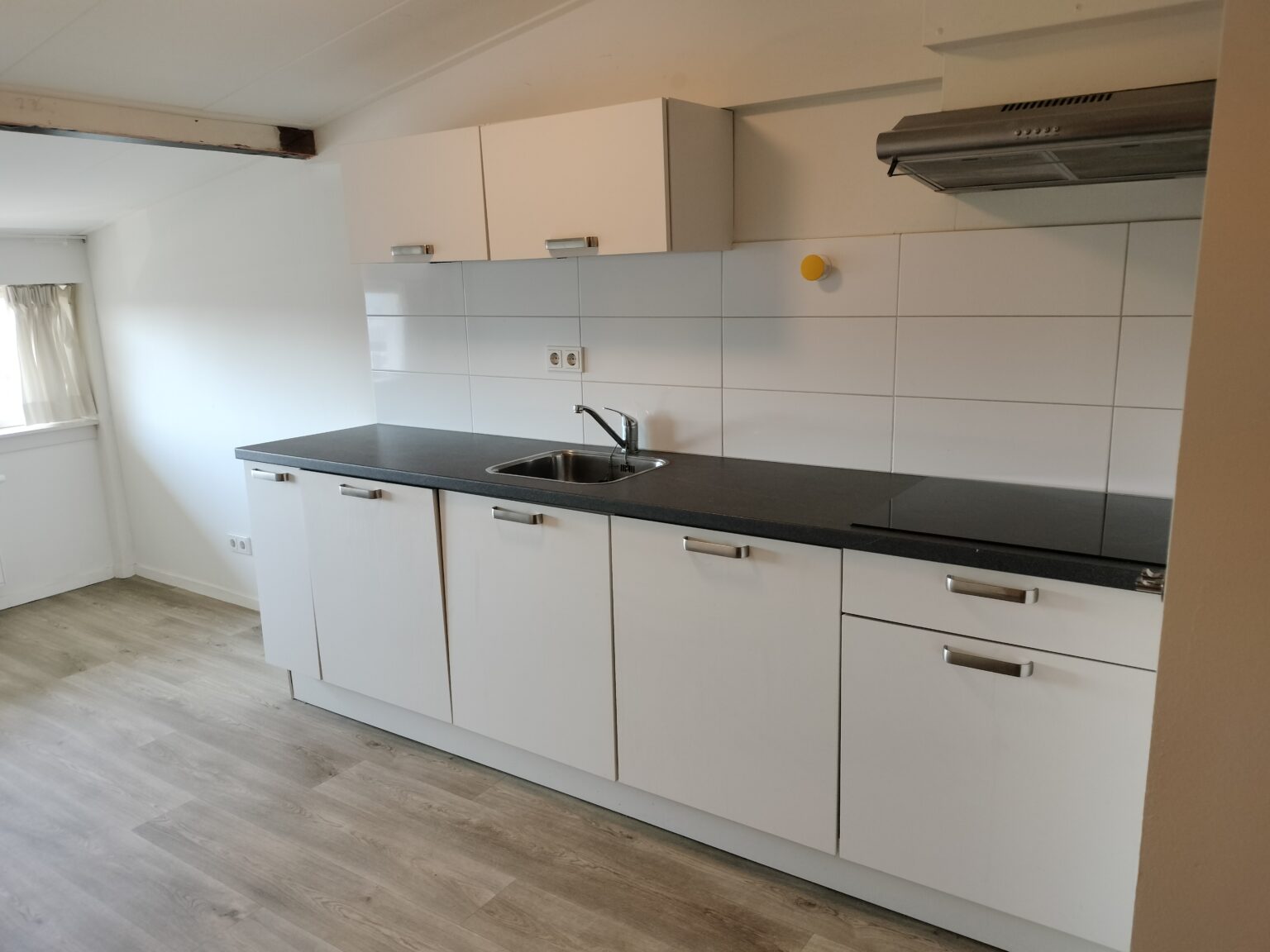 De studio is efficiënt ingedeeld en biedt een comfortabele leefruimte. De moderne keuken is voorzien van een vaatwasser, kookplaat, afzuigkap en aansluitingen voor een wasmachine, zodat alles wat je nodig hebt binnen handbereik is. De compacte badkamer is volledig uitgerust met douche, toilet en wastafel.