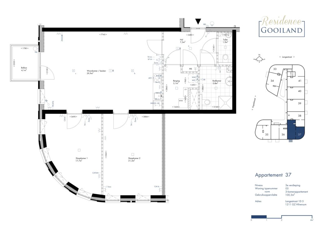 Het ontwerp van het gebouw past met zijn organische rondingen en zachte kleurtinten op fraaie wijze bij het naastgelegen hotel en theater Gooiland, een monument van Duijker. Het appartementencomplex wordt omringd door het bruisende stadscentrum van Hilversum, waarmee voorzieningen binnen handbereik zijn. Het atrium, gelegen in het hart van het gebouw, zorgt door de fraaie lichtinval met frisse groeninvulling voor een gastvrije entree. De stijlvolle balkons nodigen uit voor het ware Goois genieten en geven het geheel een Residence waardige uitstraling!