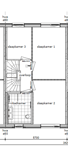 Layout: entrance, meter cupboard, toilet, living room with open kitchen, stairs cupboard and door to the backyard. 1st floor: landing, 3 bedrooms, bathroom with shower, double sink and 2nd toilet. Fixed stairs to: spacious attic with dormer and with connection for washing machine and technical room.
