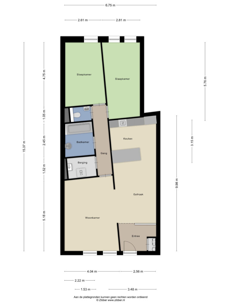 Aan de achterzijde van het appartement bevinden zich twee ruime slaapkamers, elk groot genoeg voor een tweepersoonsbed en een kledingkast. Vanuit beide slaapkamers heb je bovendien een mooi uitzicht op de binnenplaats. De andere kamer is daarnaast ook uitstekend geschikt als logeerkamer, hobbyruimte of studeerkamer.