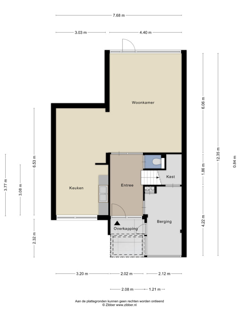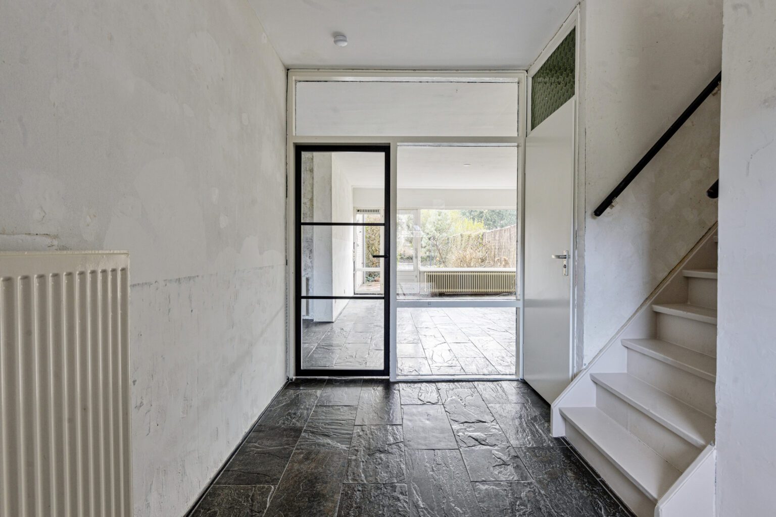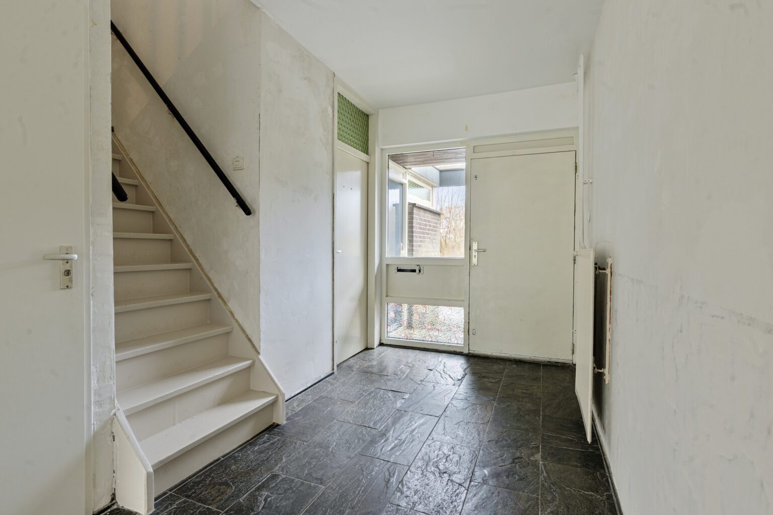 Bij binnenkomst ervaar je direct de ruimte. De royale entree biedt voldoende plaats voor een garderobe en het ontvangen van gasten. Vanuit hier heb je toegang tot het toilet, de inpandige berging, de woonkamer en de verdieping.