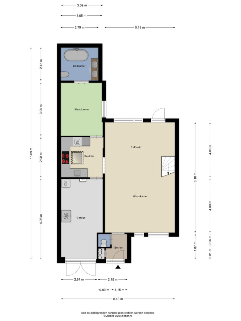 Aan de andere kant van de keuken vind je de garage. Deze biedt een fijne plek om bijvoorbeeld je gereedschap en fietsen te stallen of gewoon je auto te plaatsen. Ook kan de ruimte eenvoudig worden ingericht als werkkamer. Je kunt de garage zowel via de binnenkant van het huis betreden als vanaf buiten, dankzij de twee openslaande deuren. Als laatste heb je hier ook de aansluitingen voor het witgoed.
