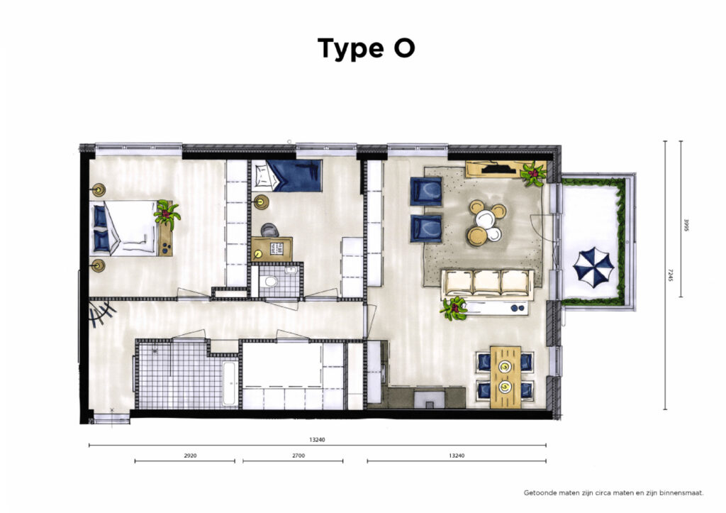 All information has been compiled with the greatest possible care. Unfortunately, we cannot always prevent the information from deviating slightly from reality. In some cases photos of a similar house or apartment are used and serve as an impression. No rights can be derived from the texts, plans, photos and dimensions.