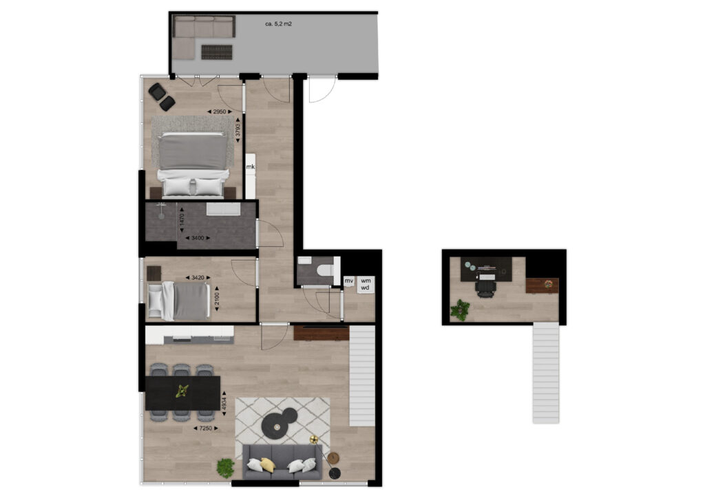 All information has been compiled with the greatest possible care. Unfortunately, we cannot always prevent the information from deviating slightly from reality. In some cases photos of a similar house or apartment are used and serve as an impression. No rights can be derived from the texts, plans, photos and dimensions.