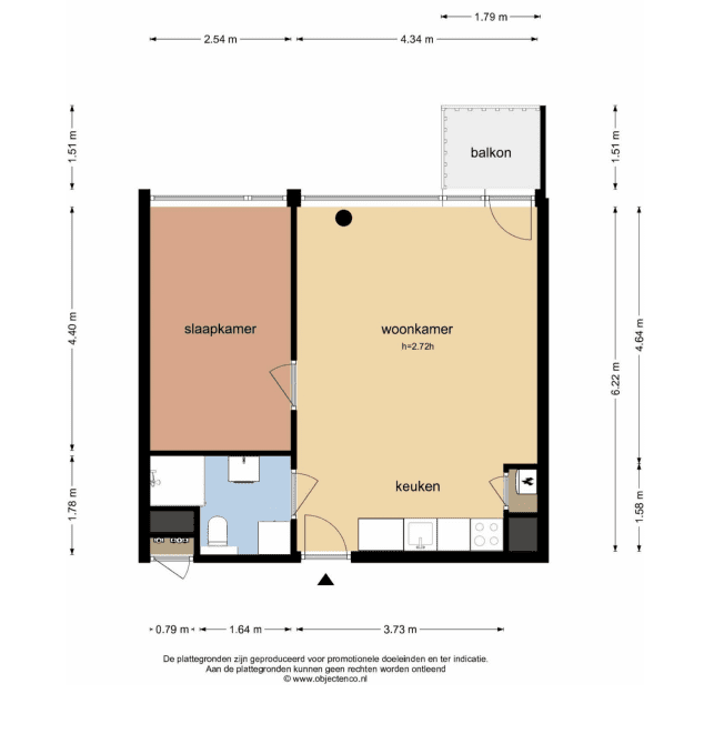 De woning is gelegen op de tweede verdieping. Je komt binnen in de woonkamer met open keuken. Vanuit de woonkamer heb je toegang tot het fijne balkon. Er is één goed formaat slaapkamer. De badkamer is voorzien van douche, wastafelmeubel en toilet.