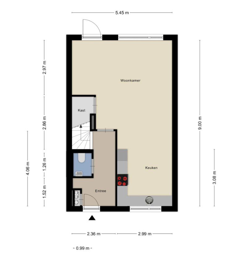 Begane grond: Entree/hal met toilet (voorzien van fonteintje), meterkast en trapopgang. Tuingerichte woonkamer met provisieruimte en toegang tot de zonnige tuin. De moderne, open keuken is uitgerust met een inductiekookplaat, afzuigkap, koelkast, vriezer, combimagnetron en vaatwasser. De gehele begane grond beschikt over vloerverwarming en een stijlvolle pvc-vloer.