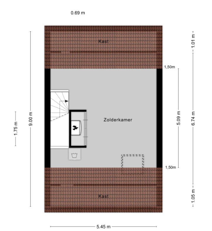 Tweede verdieping: Via een vaste trap bereikbare zolder met mogelijkheden voor een vierde en vijfde slaapkamer. Hier vind je tevens de technische ruimte met een 200-liter boiler, warmteterugwinunit, omvormer, was- en droogaansluiting en volop bergruimte.