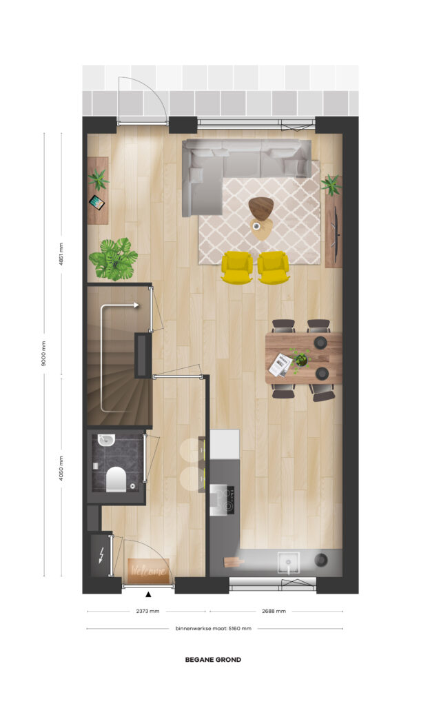 Alle informatie is met de grootst mogelijke zorg samengesteld. Helaas kunnen wij niet altijd voorkomen dat de informatie enigszins afwijkt van de werkelijkheid. In sommige gevallen worden foto’s gebruikt van een soortgelijke woning of appartement en dienen als impressie. Aan de teksten, plattegronden, foto’s en maatvoeringen kunnen geen rechten worden ontleend.