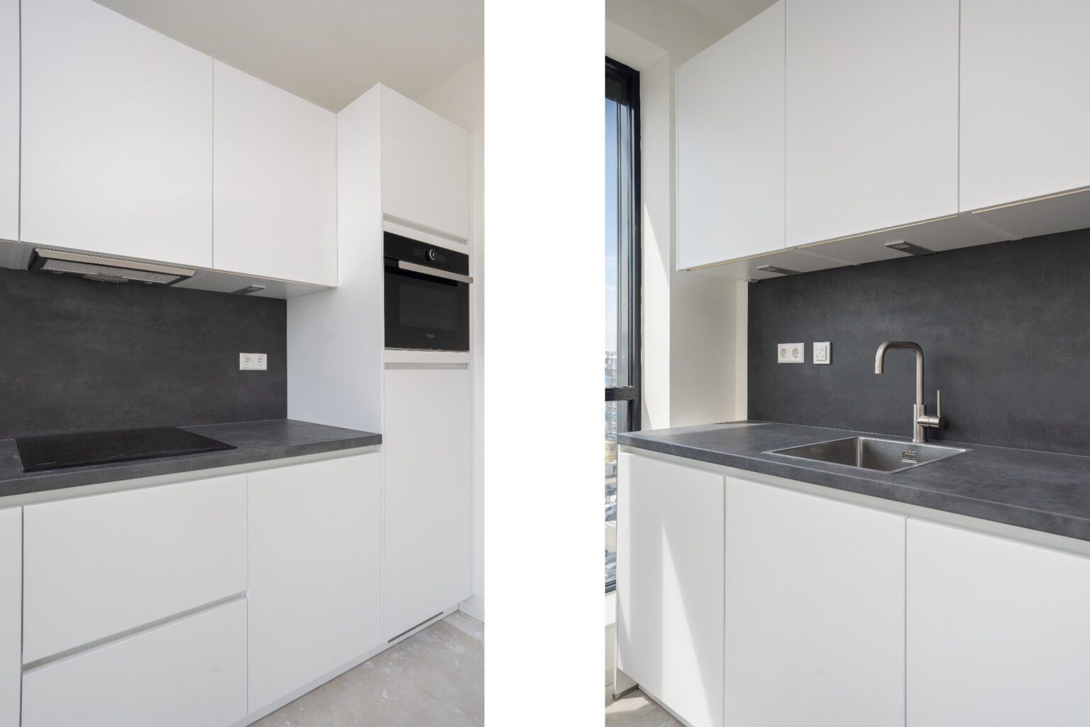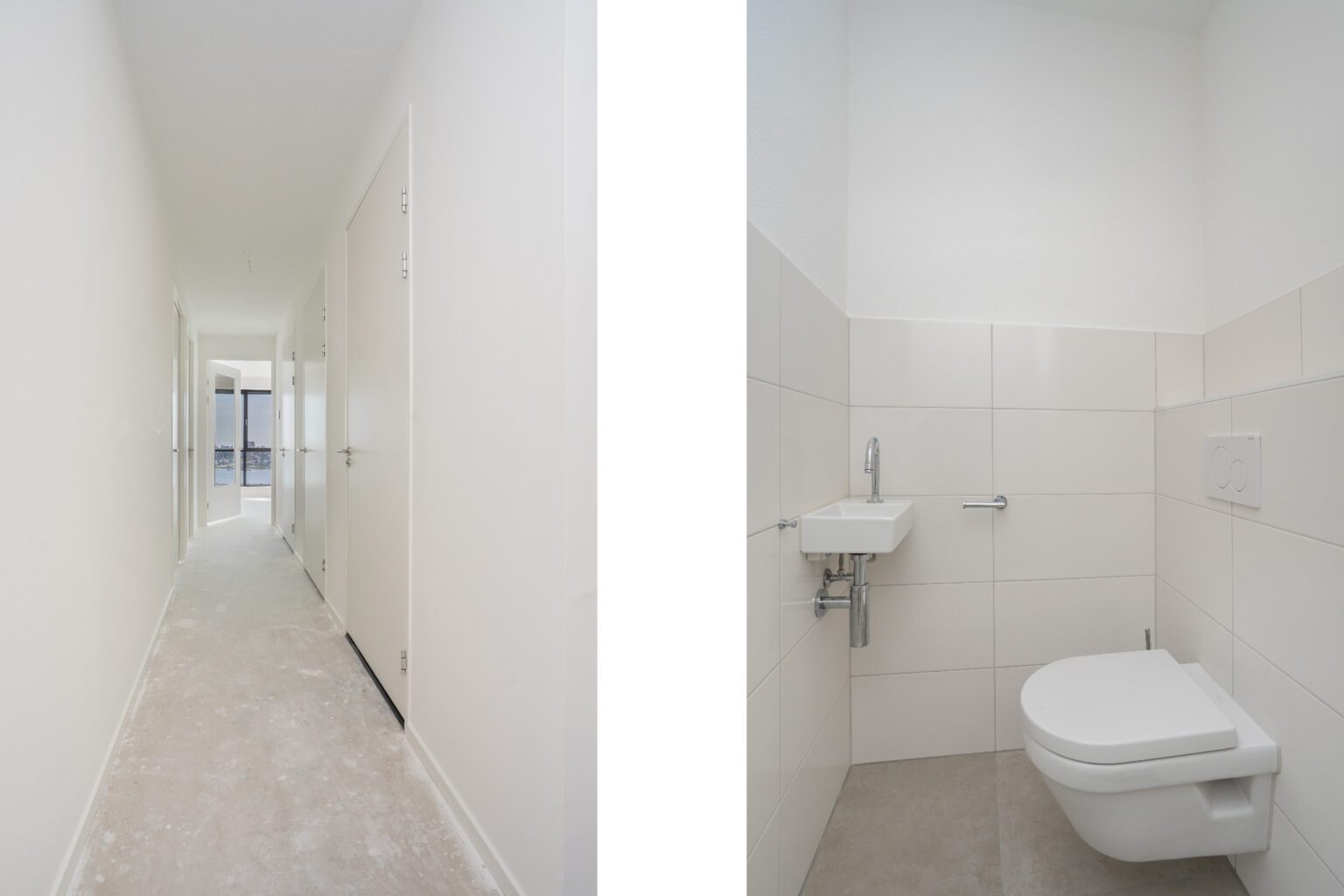 Je komt binnen in de hal die toegang geeft tot alle vertrekken. De lichte woonkamer met open keuken is een heerlijke plek om thuis te komen en is voorzien van diverse inbouwapparatuur. Vanuit de woonkamer stap je zo het balkon op, waar je kunt genieten van een prachtig uitzicht over het water — perfect voor een kop koffie in de ochtend of een drankje in de avond.