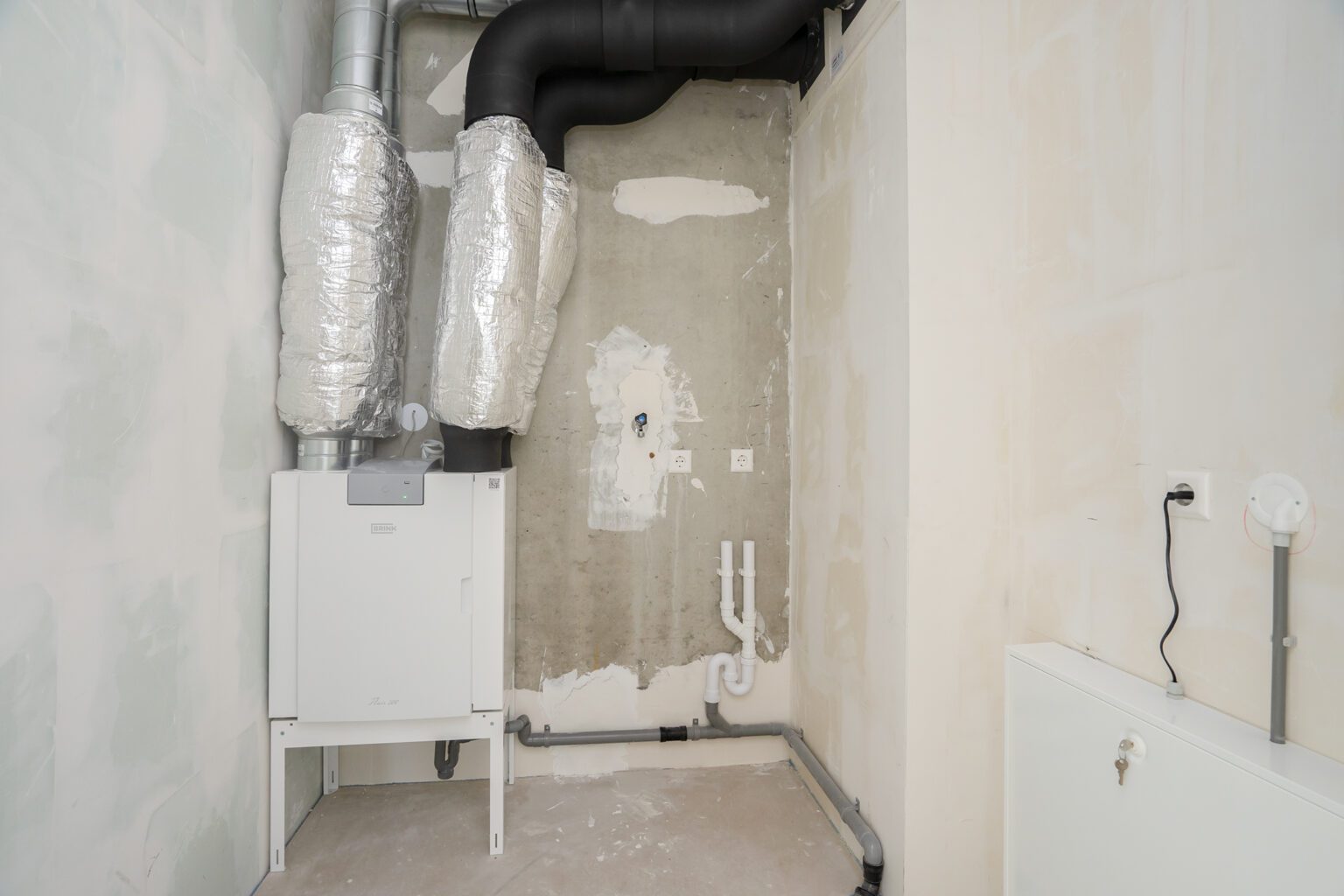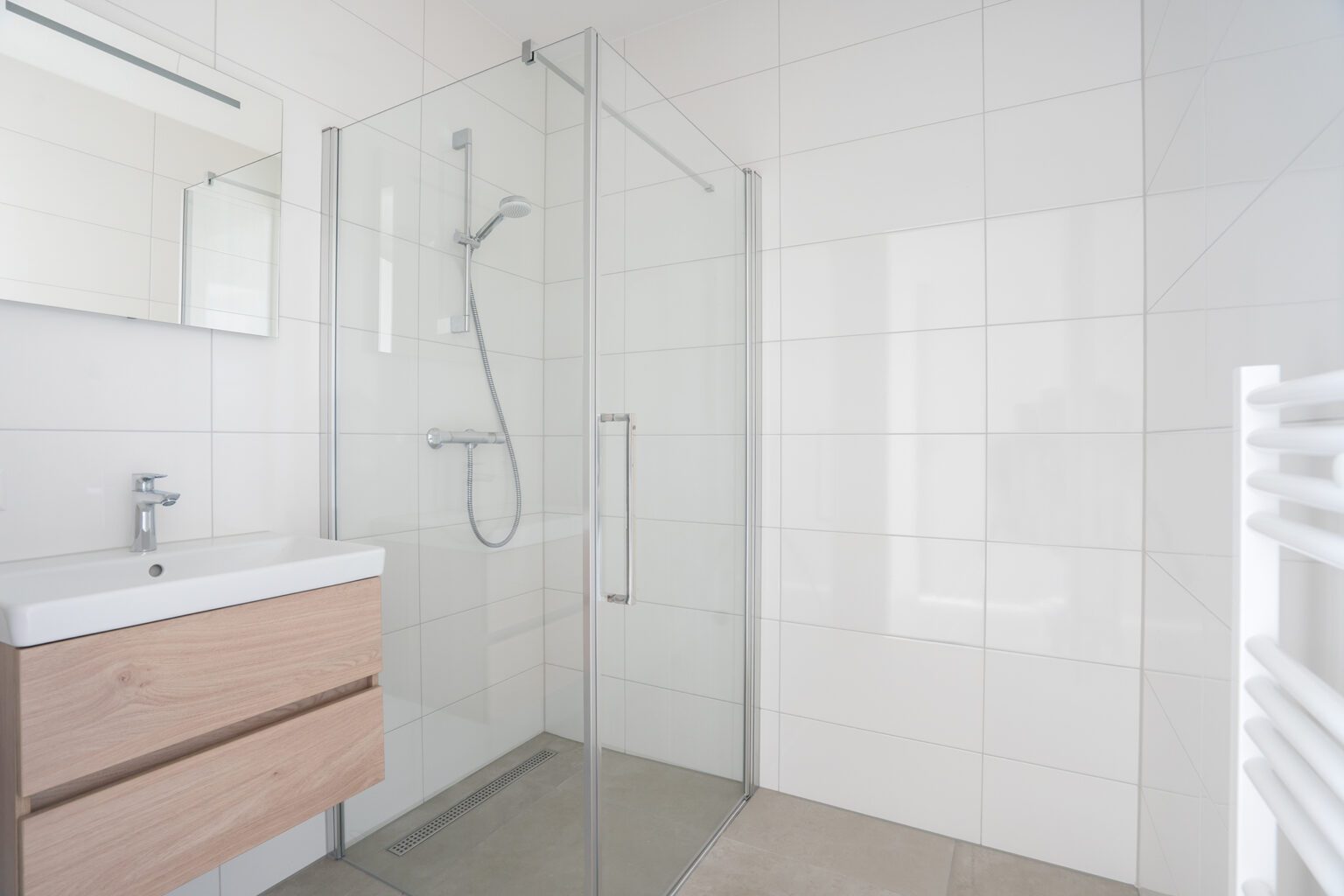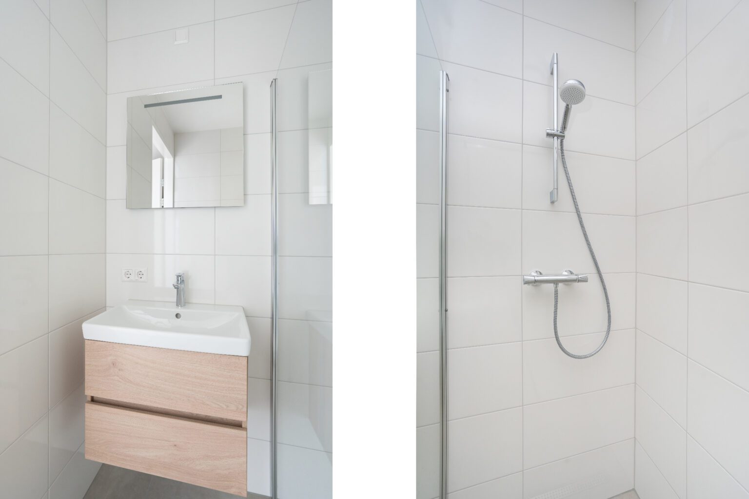 Het appartement beschikt over twee slaapkamers van goed formaat. De badkamer is modern afgewerkt en voorzien van een inloopdouche en wastafel. Daarnaast is er een apart toilet, een aparte ruimte voor de wasmachine en droger, én een extra interne berging. Ook beschik je over een externe berging voor bijvoorbeeld fietsen of extra opslag.
