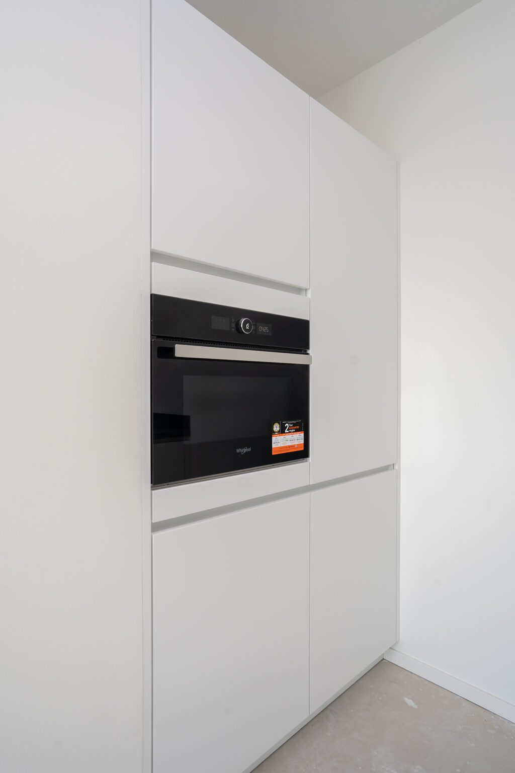 Het appartement beschikt over een slaapkamer van goed formaat. De badkamer is modern en voorzien van een inloopdouche en dubbele wastafel, daarnaast is er een apart toilet. Extra handig: een aparte ruimte voor de wasmachine en droger, een interne berging én een externe berging voor bijvoorbeeld fietsen of extra opslag.