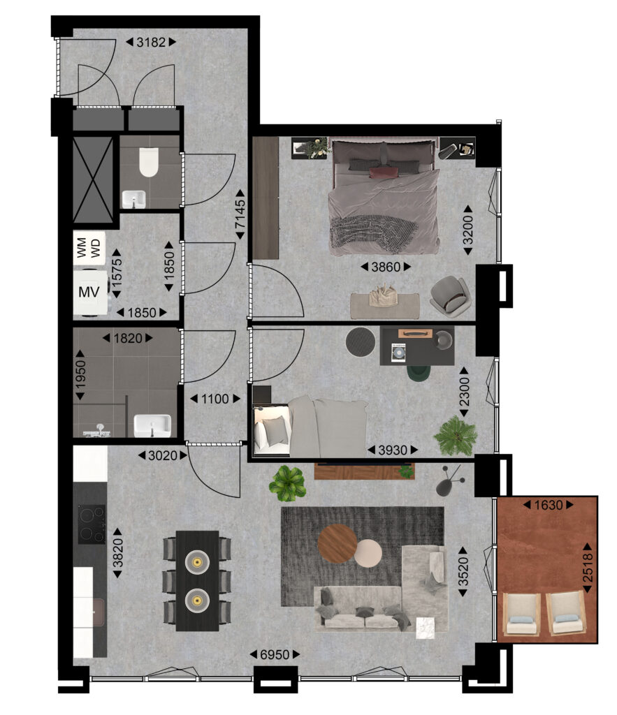 Prachtig 3-kamer appartement van 69 m² gelegen op de 6e etage beschikbaar per 1 december 2025