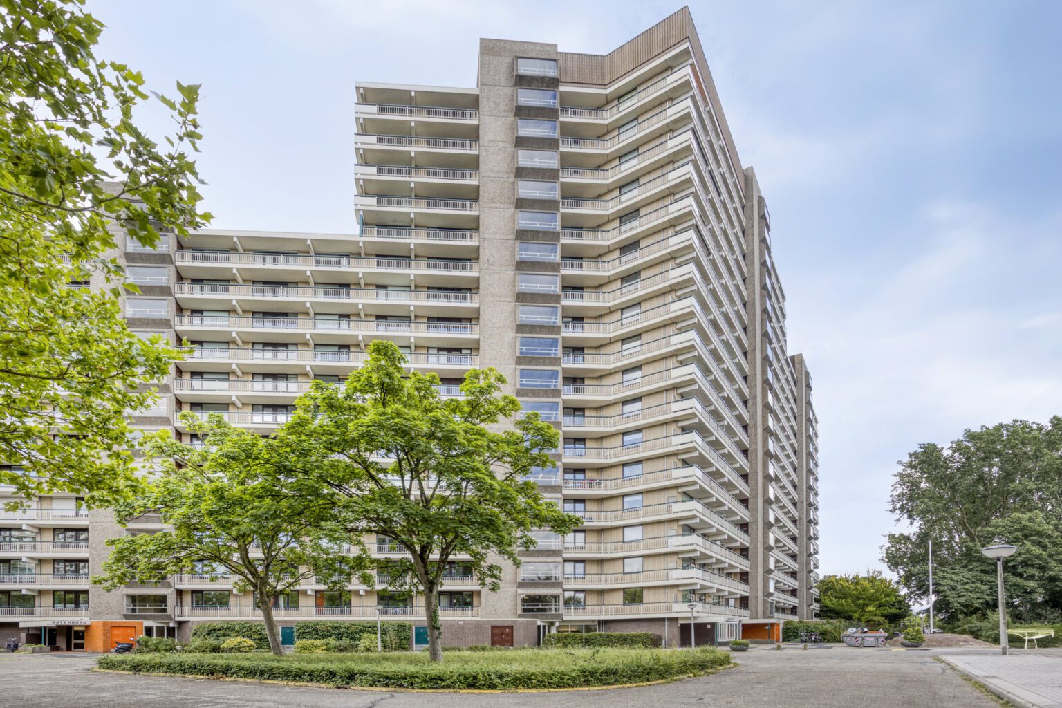 Je betreedt het appartement via de ingang “Batenburg”, waar de brievenbussen en het bellentableau zich bevinden. Het appartement ligt op de 7de verdieping en is zowel met de trap als de lift snel bereikbaar. Met slechts drie woningen per verdieping geniet je van veel rust en privacy.