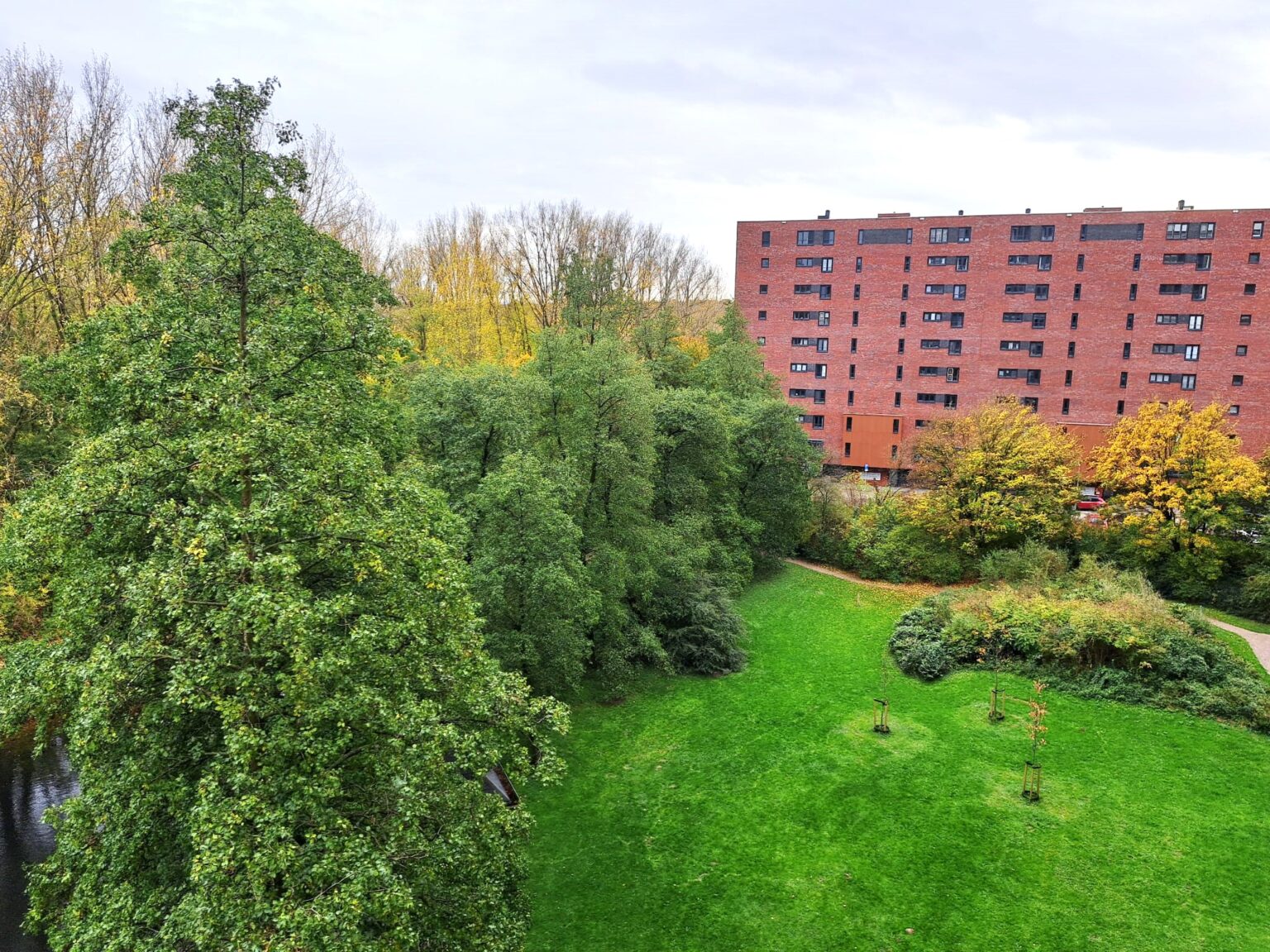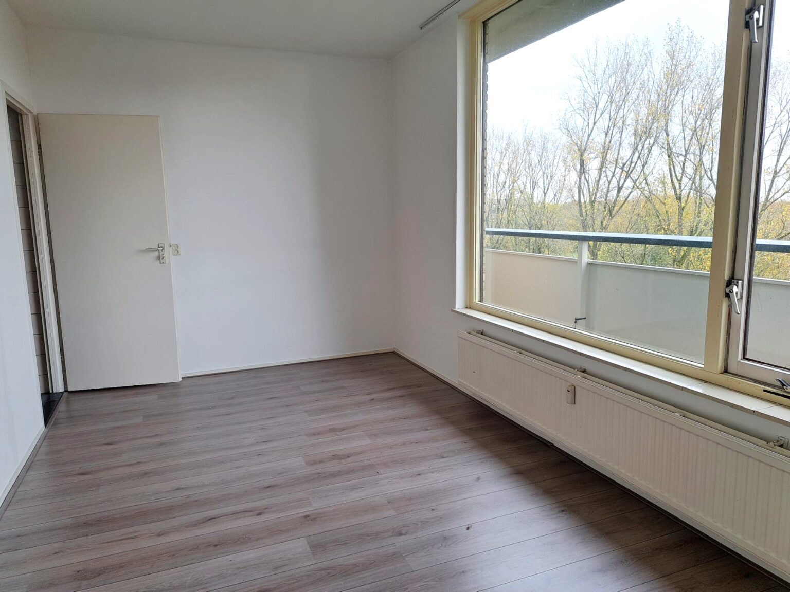 Het appartement heeft een ruime slaapkamer met een prachtig uitzicht over het park, perfect voor een ontspannen start van de dag. Naast ruimte voor een groot bed is er genoeg plek voor een kledingkast of bureau. Dankzij het grote raam stroomt er veel natuurlijk licht naar binnen, waardoor de ruimte nog aangenamer aanvoelt.