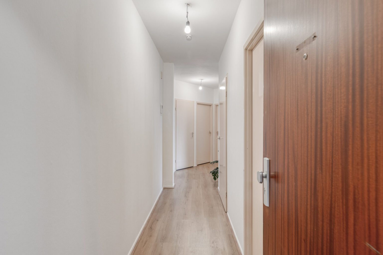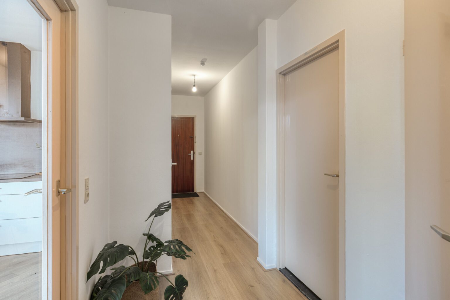 Bij binnenkomst in de ruime hal voelt het meteen goed. Er is hier genoeg plek voor een kapstok en schoenenkast. Bezoekers laat je eenvoudig binnen via de intercom.