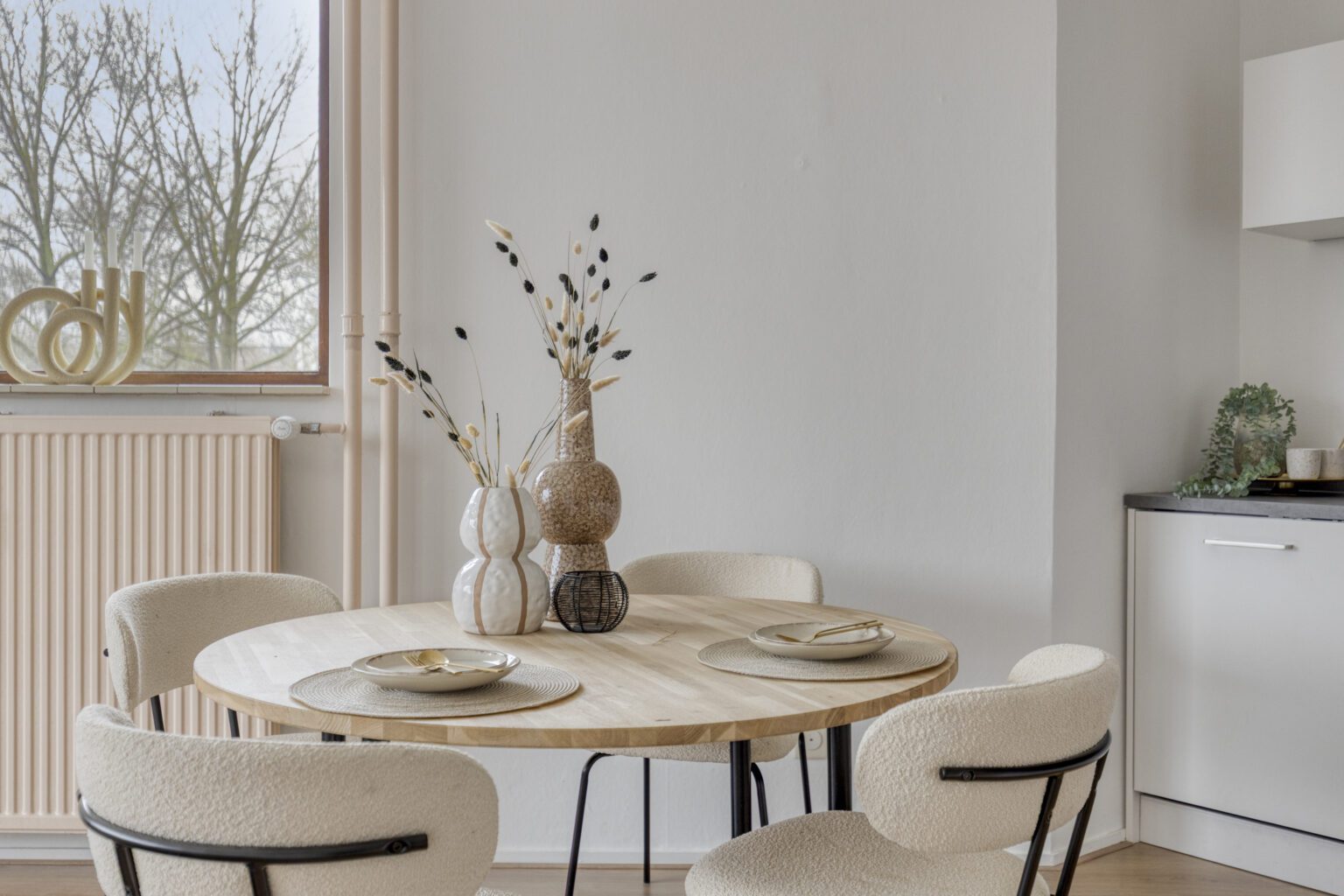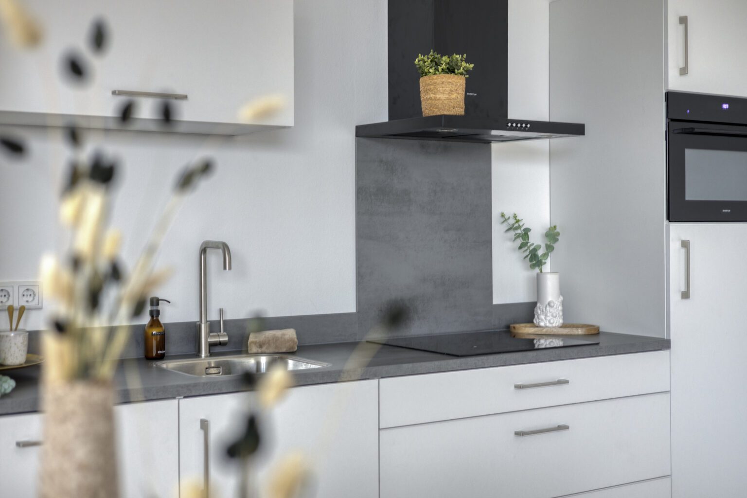 De nieuwe keuken loopt naadloos over in het eetgedeelte, wat zorgt voor een open en levendige leefruimte. De keuken is tijdloos ontworpen en uitgerust met luxe apparatuur, waaronder een vaatwasser, inductiekookplaat, afzuigkap, koelkast en oven/magnetron. Dankzij de royale werkbladen kook je hier met gemak en bereid je binnen de kortste keren een heerlijke maaltijd.
