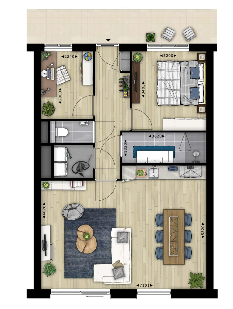 Alle informatie is met de grootst mogelijke zorg samengesteld. Helaas kunnen wij niet altijd voorkomen dat de informatie enigszins afwijkt van de werkelijkheid. In sommige gevallen worden foto’s gebruikt van een soortgelijke woning of appartement en dienen als impressie. Aan de teksten, plattegronden, foto’s en maatvoeringen kunnen geen rechten worden ontleend.