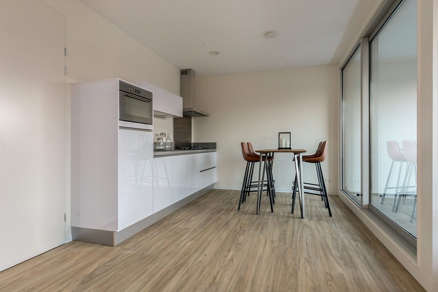 – op de vloer ligt een luxe PVC vloer met houtlook en is voorzien van vloerverwarming