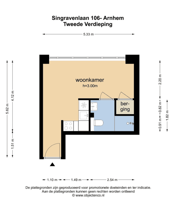 Alle informatie is met de grootst mogelijke zorg samengesteld. Helaas kunnen wij niet altijd voorkomen dat de informatie enigszins afwijkt van de werkelijkheid. In sommige gevallen worden foto’s gebruikt van een soortgelijke woning of appartement en dienen als impressie. Aan de teksten, plattegronden, foto’s en maatvoeringen kunnen geen rechten worden ontleend.