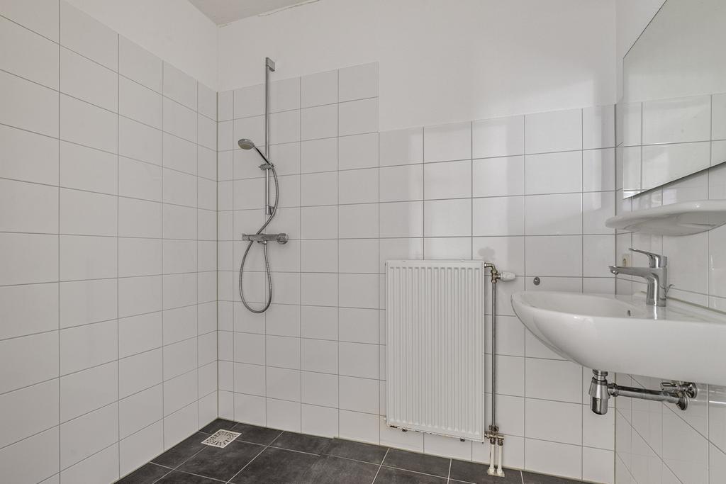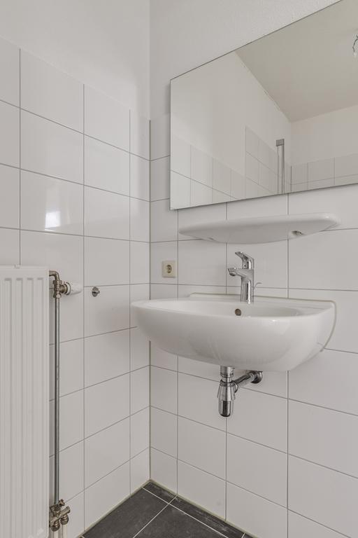 De badkamer is keurig verzorgd. Er is voldoende ruimte om je na een frisse douche af te drogen.