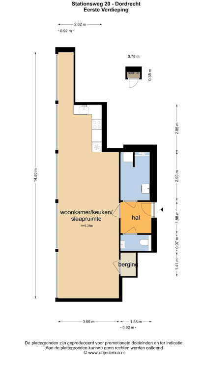 Alle informatie is met de grootst mogelijke zorg samengesteld. Helaas kunnen wij niet altijd voorkomen dat de informatie enigszins afwijkt van de werkelijkheid. In sommige gevallen worden foto’s gebruikt van een soortgelijke woning of appartement en dienen als impressie. Aan de teksten, plattegronden, foto’s en maatvoeringen kunnen geen rechten worden ontleend.