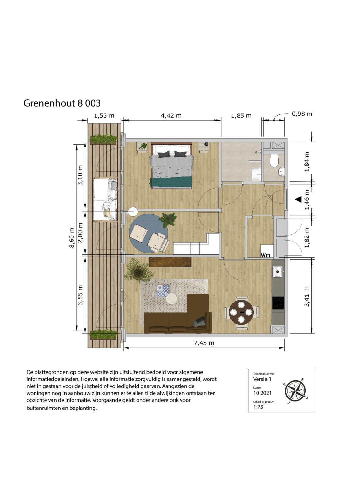 Alle informatie is met de grootst mogelijke zorg samengesteld. Helaas kunnen wij niet altijd voorkomen dat de informatie enigszins afwijkt van de werkelijkheid. In sommige gevallen worden foto’s gebruikt van een soortgelijke woning of appartement en dienen als impressie. Aan de teksten, plattegronden, foto’s en maatvoeringen kunnen geen rechten worden ontleend.