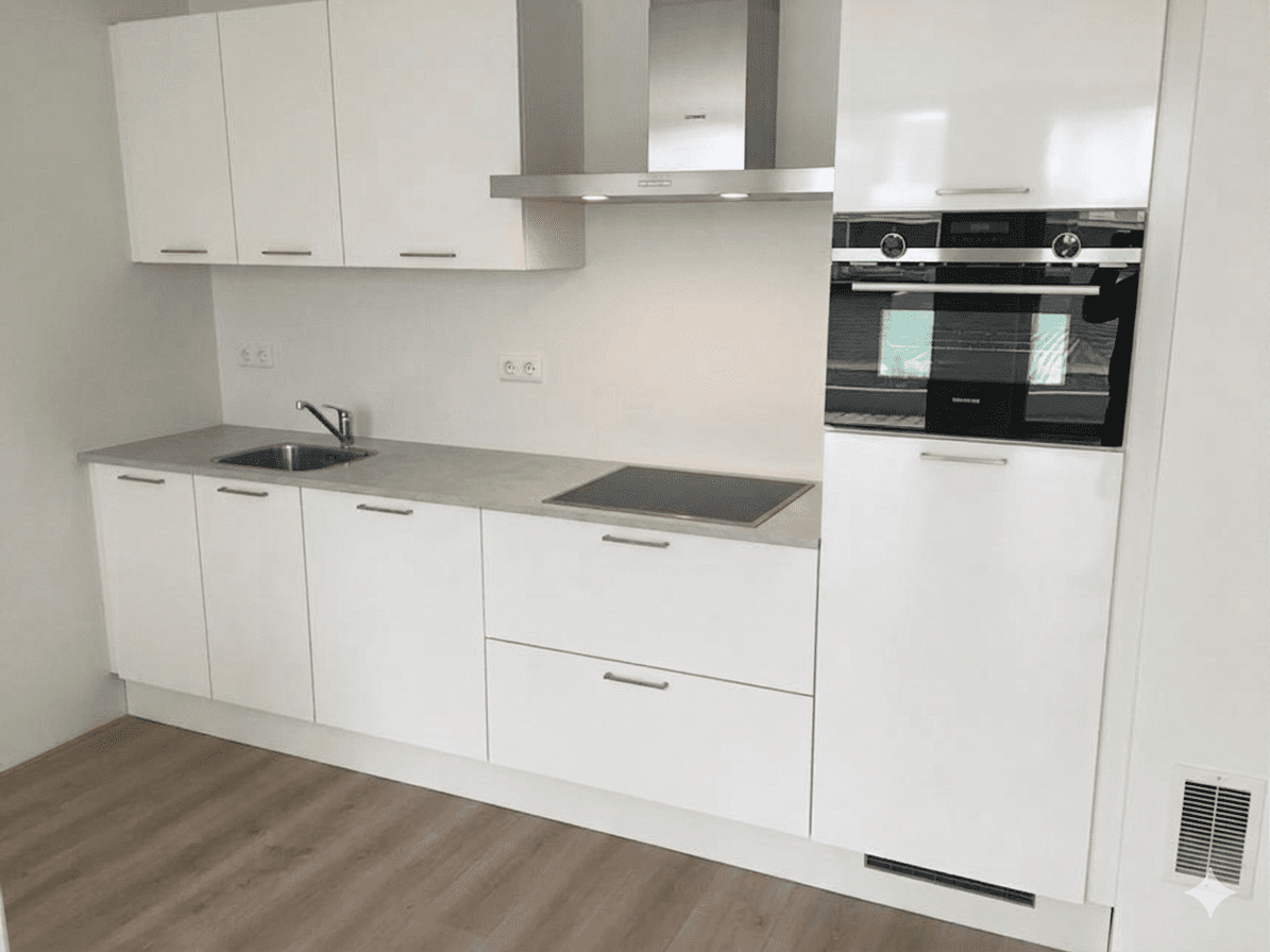 De woonkamer is een heerlijke plek om te vertoeven. Vanuit de woonkamer loop je zo naar buiten het balkon op. De open keuken in rechte opstelling heeft een luxe uitstraling en is voorzien van Siemens inbouwapparatuur. De keuken is voorzien van een inductiekookplaat, recirculatie afzuigkap, koelkast, combi-oven en een vaatwasser. Ideaal voor het bereiden van jouw favoriete gerechten!
