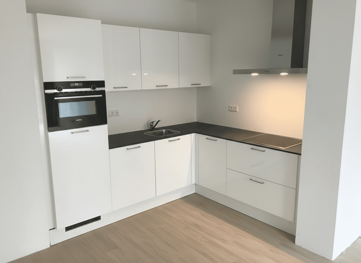 Lichte woonkamer & open keuken: De woonkamer is circa 3,70 meter breed en sluit direct aan op de moderne keuken, waardoor je altijd in contact blijft met je gasten terwijl je kookt.
