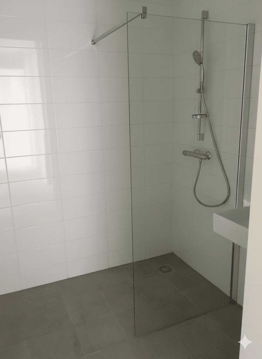 Dit appartement is gelegen op de tweede verdieping van het complex. Je komt het appartement binnen en stapt ze de hal binnen waar rechts de toegang is tot de W.C. met hang closet en fonteintje. Links vind je een kleine berging met aansluiting voor je wasmachine. De badkamer is voorzien van een inloopdouche en wastafel met spiegel.