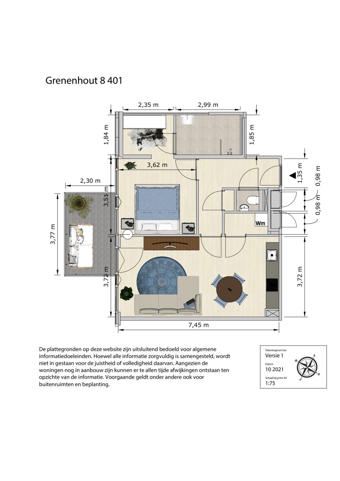 Alle informatie is met de grootst mogelijke zorg samengesteld. Helaas kunnen wij niet altijd voorkomen dat de informatie enigszins afwijkt van de werkelijkheid. In sommige gevallen worden foto’s gebruikt van een soortgelijke woning of appartement en dienen als impressie. Aan de teksten, plattegronden, foto’s en maatvoeringen kunnen geen rechten worden ontleend.