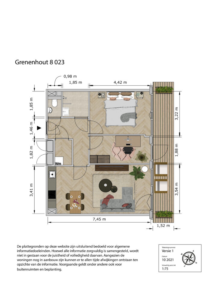 Alle informatie is met de grootst mogelijke zorg samengesteld. Helaas kunnen wij niet altijd voorkomen dat de informatie enigszins afwijkt van de werkelijkheid. In sommige gevallen worden foto’s gebruikt van een soortgelijke woning of appartement en dienen als impressie. Aan de teksten, plattegronden, foto’s en maatvoeringen kunnen geen rechten worden ontleend.