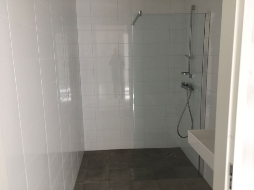 Vanuit de hal bereik je de royale slaapkamer. Daarnaast bereik je vanuit de hal de badkamer, voorzien van een douche, wastafel en spiegel. Het separate toilet is voorzien van een vrij hangend toilet en een fonteintje.