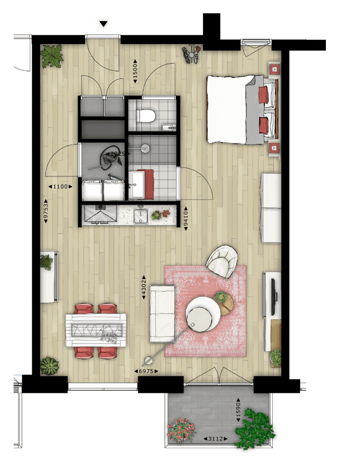 Je eigen balkon biedt een heerlijke plek om te ontspannen en te genieten van alles wat Strijp-S te bieden heeft. Wonen in Blok59 is meer dan een dak boven je hoofd – het is een stedelijke leefstijl met karakter.