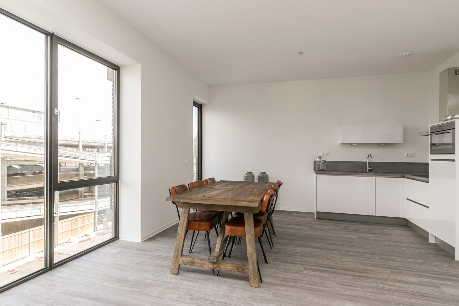 Je komt binnen in een lichte en ruime woonkamer met open keuken – dé plek om te ontspannen of gezellig te borrelen. Dankzij de grote raampartijen geniet je van veel natuurlijk licht.