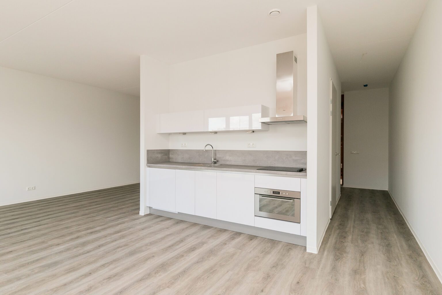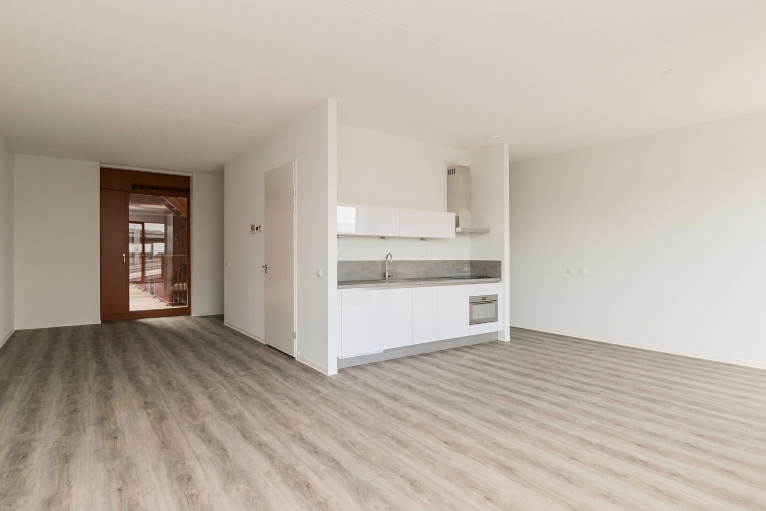 De loft is voorzien van een ruime, lichte woonruimte, gekenmerkt door grote raampartijen die zorgen voor een overvloed aan natuurlijk licht en een prachtig uitzicht op de bruisende wijk. De open indeling geeft een gevoel van ruimte, terwijl de moderne keuken een perfecte mix biedt van design en gebruiksgemak. De keuken is uitgerust met hoogwaardige inbouwapparatuur, zoals een inductiekookplaat, combimagnetron, vaatwasser en koelkast – ideaal voor alles van een snelle hap tot een uitgebreid diner.