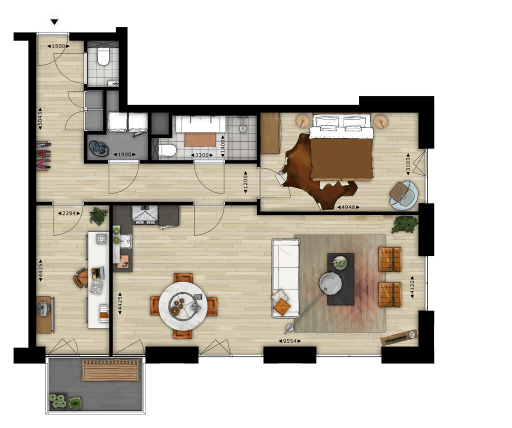 Alle informatie is met de grootst mogelijke zorg samengesteld. Helaas kunnen wij niet altijd voorkomen dat de informatie enigszins afwijkt van de werkelijkheid. In sommige gevallen worden foto’s gebruikt van een soortgelijke woning of appartement en dienen als impressie. Aan de teksten, plattegronden, foto’s en maatvoeringen kunnen geen rechten worden ontleend.