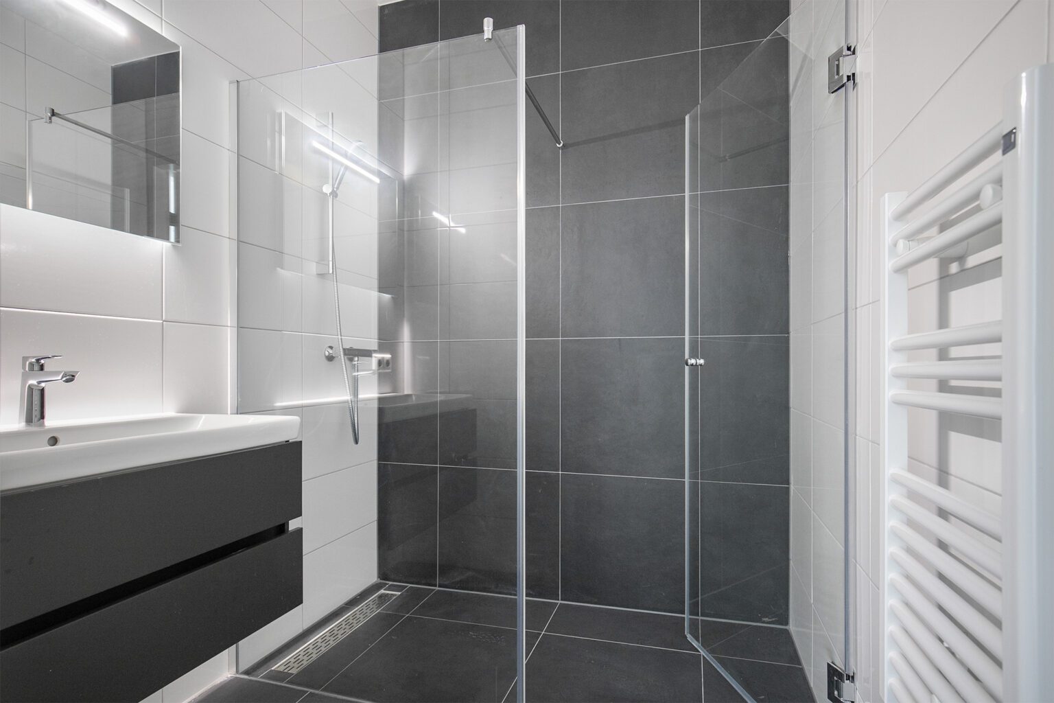 De badkamer straalt luxe uit en is afgewerkt met hoogwaardig Villeroy & Boch sanitair. Een wastafel met onderkast voor extra opbergruimte en een comfortabele inloopdouche met vlakke vloer maken het plaatje compleet.