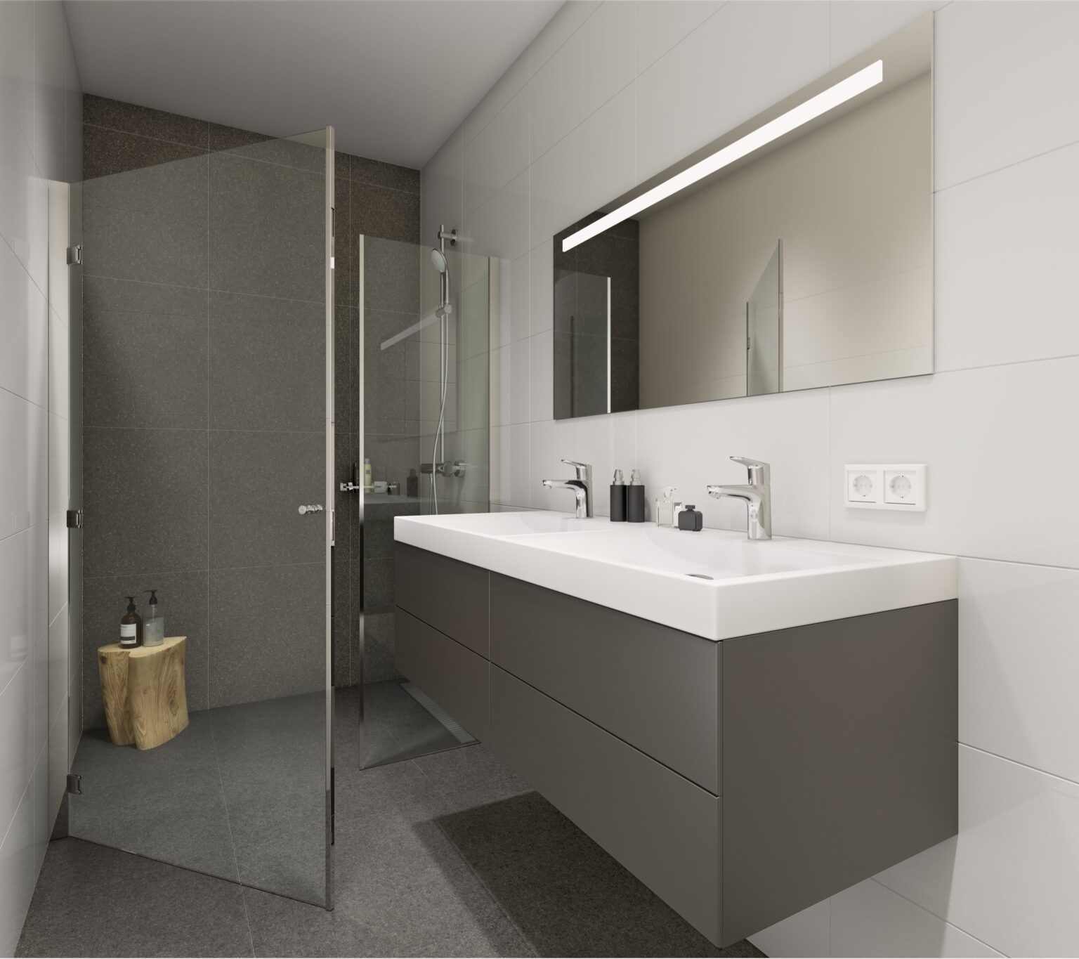 De keuken is compleet uitgerust met een 4-pits kooktoestel, ruime koelkast, combimagnetron en moderne vaatwasser. Zo wordt koken niet alleen eenvoudig, maar ook plezierig. De stijlvolle badkamer is voorzien van een inloopdouche met vlakke vloer en moderne drain, en de wastafel met onderkast biedt extra opbergruimte.