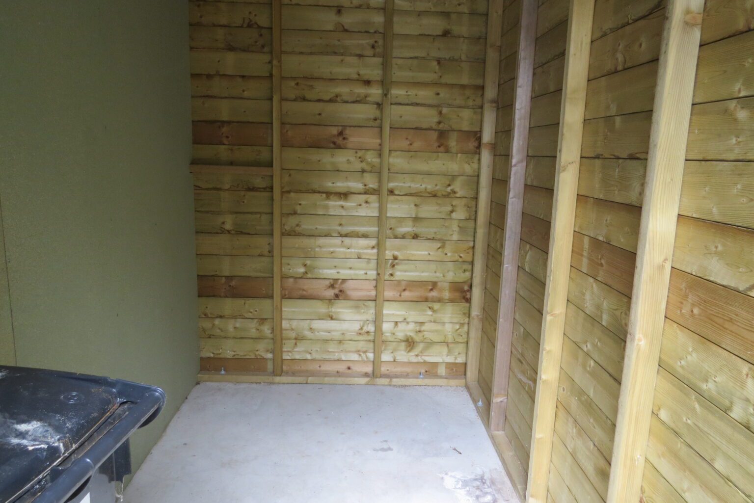 De woning beschikt over een eigen parkeerplek en een eigen fietsenberging, gelegen achter het complex.