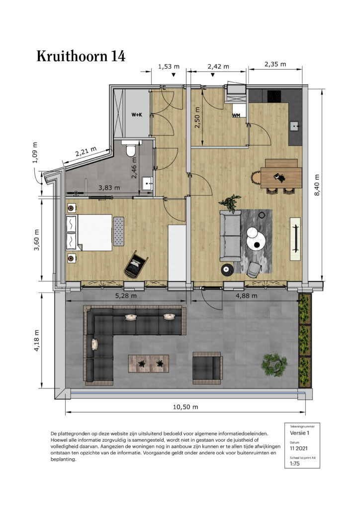 Alle informatie is met de grootst mogelijke zorg samengesteld. Helaas kunnen wij niet altijd voorkomen dat de informatie enigszins afwijkt van de werkelijkheid. In sommige gevallen worden foto’s gebruikt van een soortgelijke woning of appartement en dienen als impressie. Aan de teksten, plattegronden, foto’s en maatvoeringen kunnen geen rechten worden ontleend.
