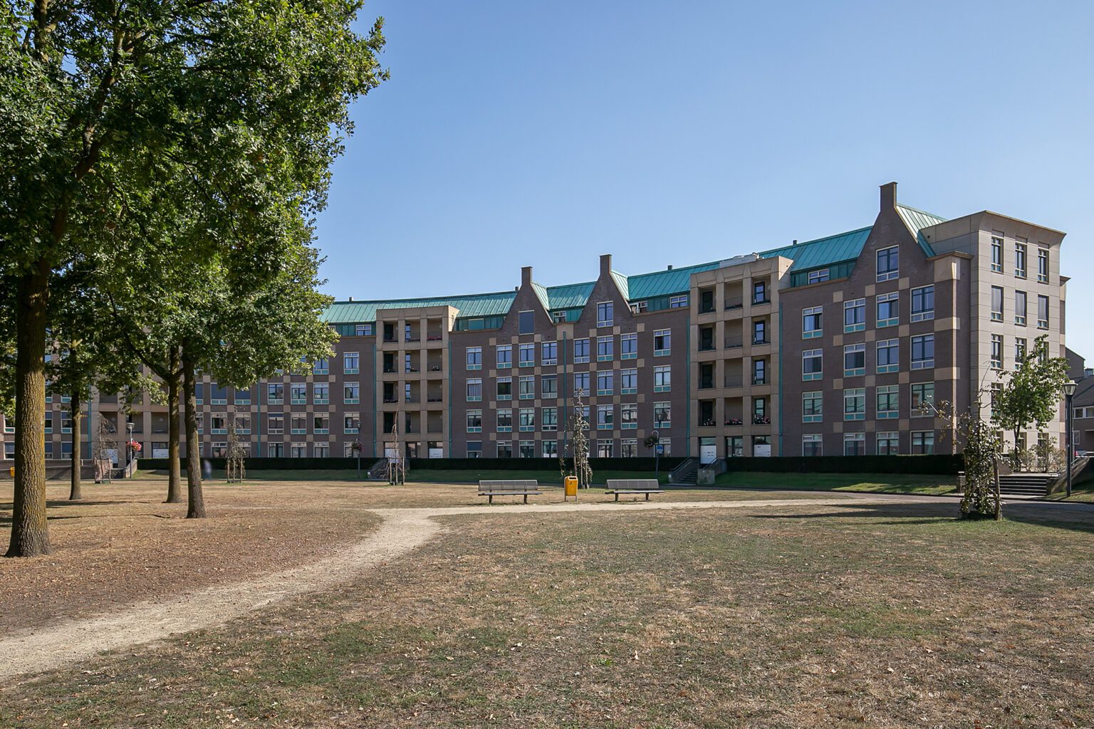 Het gebouw kenmerkt zich door zijn ronde vorm en Italiaanse invloeden, wat zorgt voor een sfeervolle en sociale woonomgeving met een gezamenlijke binnentuin. Hier woon je ruim, centraal en in een prettige, levendige omgeving. Dit appartement beschikt niet over een loggia.