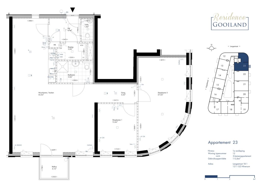 Het ontwerp van het gebouw past met zijn organische rondingen en zachte kleurtinten op fraaie wijze bij het naastgelegen hotel en theater Gooiland, een monument van Duijker. Het appartementencomplex wordt omringd door het bruisende stadscentrum van Hilversum, waarmee voorzieningen binnen handbereik zijn. Het atrium, gelegen in het hart van het gebouw, zorgt door de fraaie lichtinval met frisse groeninvulling voor een gastvrije entree. De stijlvolle balkons nodigen uit voor het ware Goois genieten en geven het geheel een Residence waardige uitstraling!
