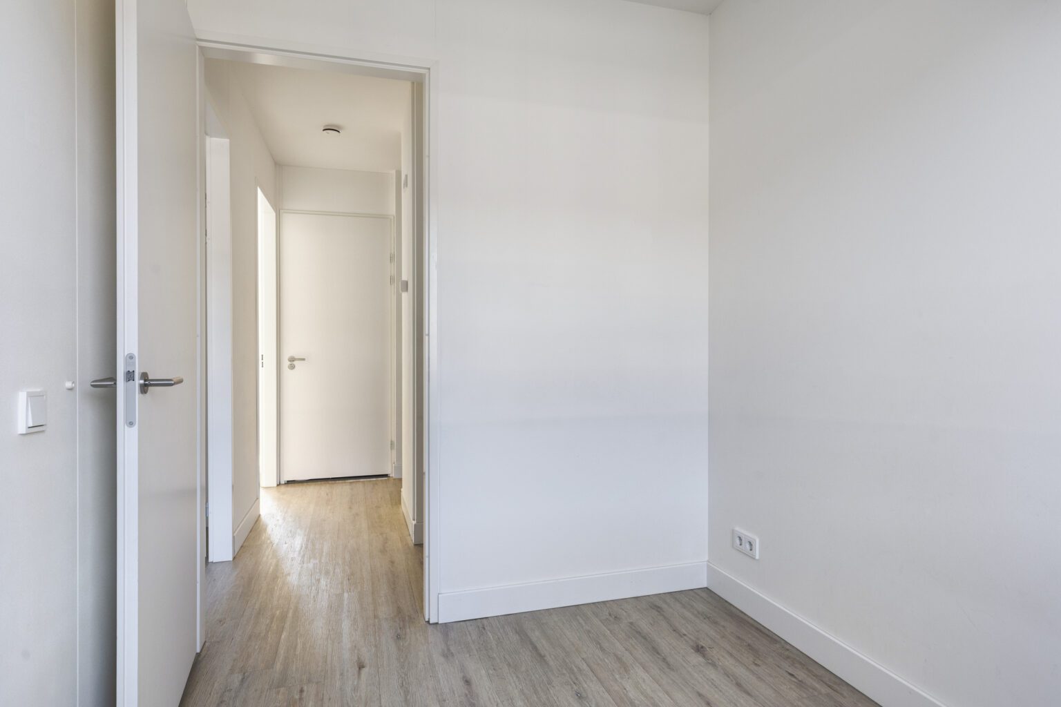 Op de eerste verdieping bevinden zich drie slaapkamers. Deze ruimtes zijn veelzijdig in te delen en uitstekend geschikt als ouderslaapkamer, kinderkamer, logeerkamer of thuiswerkplek. De kamers bieden voldoende ruimte voor een tweepersoonsbed, bureau en garderobekast. Twee slaapkamers zijn aan de achterzijde gepositioneerd en één aan de voorkant, waardoor er veel daglicht binnenkomt. De kamers zijn afgewerkt met neutrale wandkleuren en hebben grote ramen die een prettig uitzicht op de tuin en de straat bieden.
