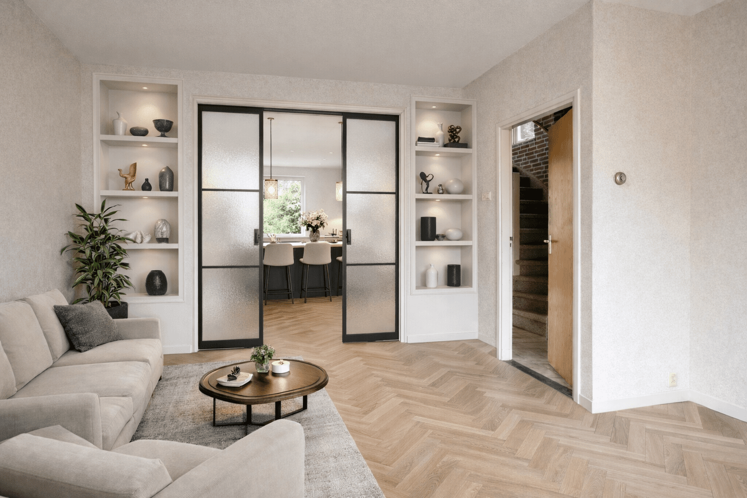 Of, wat zou je bijvoorbeeld vinden van stijlvolle kamer-en-suite deuren tussen de woonkamer en een (toekomstige) eetkamer, waardoor je een klassieke en sfeervolle woonbeleving kunt creëren.