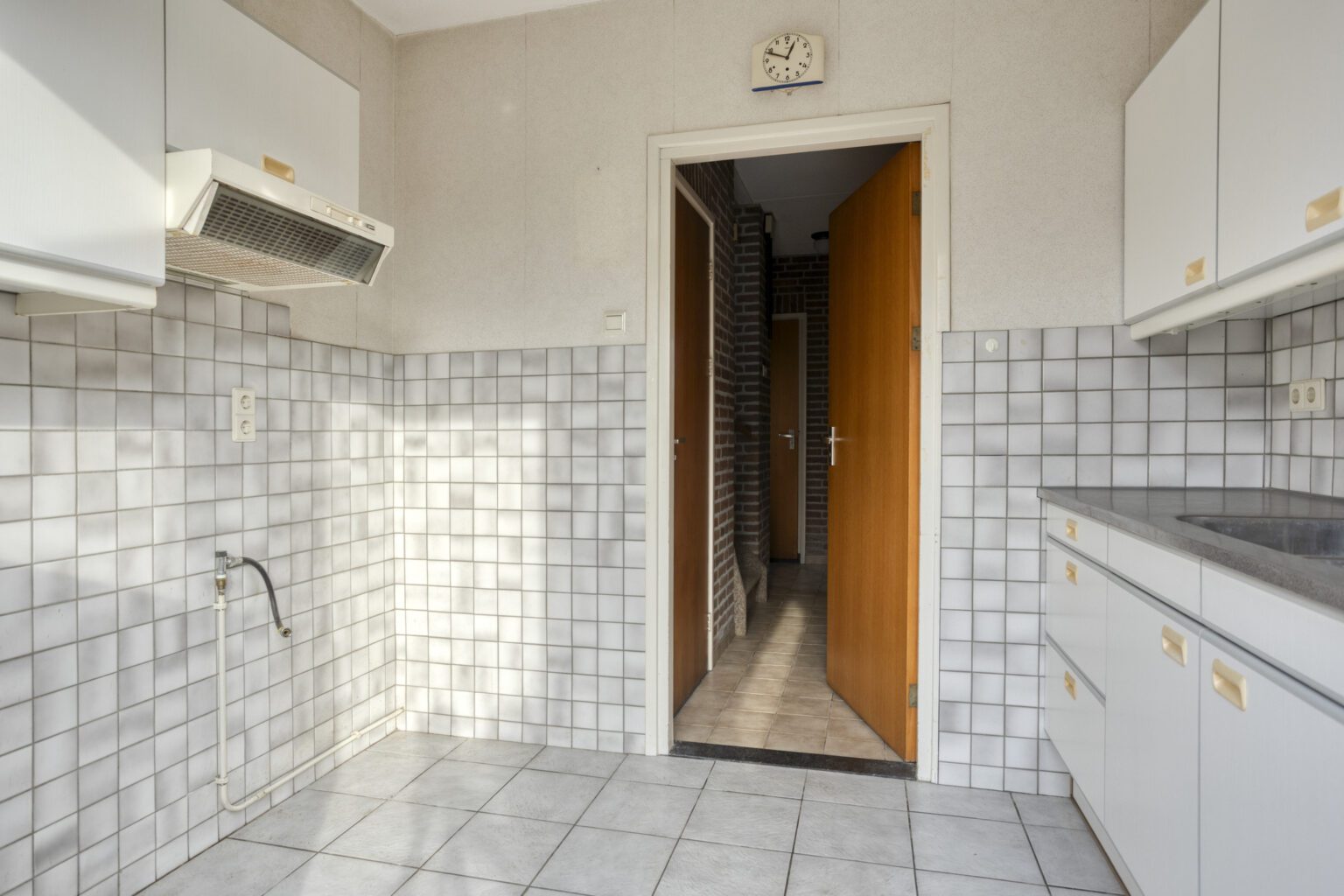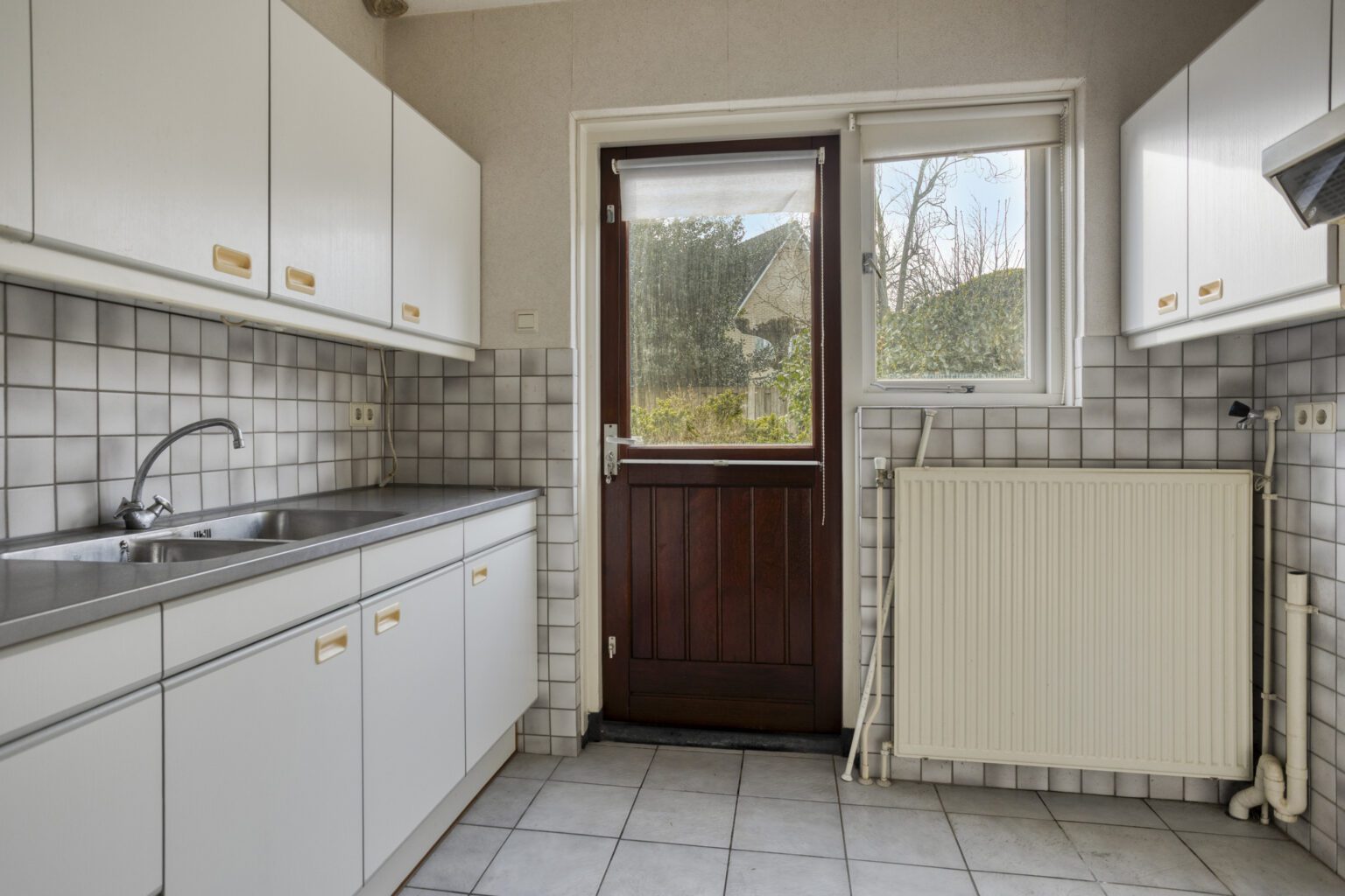 De keuken ligt ook aan de achterzijde van de woning. De keuken heeft een mooie lichtinval en er is voldoende opstelruimte voor het aanrecht en de keukenapparatuur. Vanuit de keuken loop je naar de tuin.