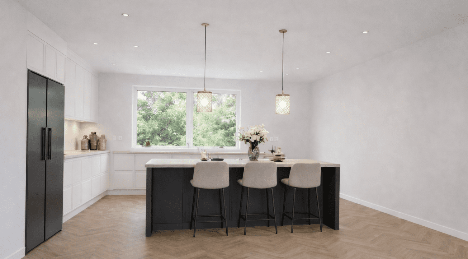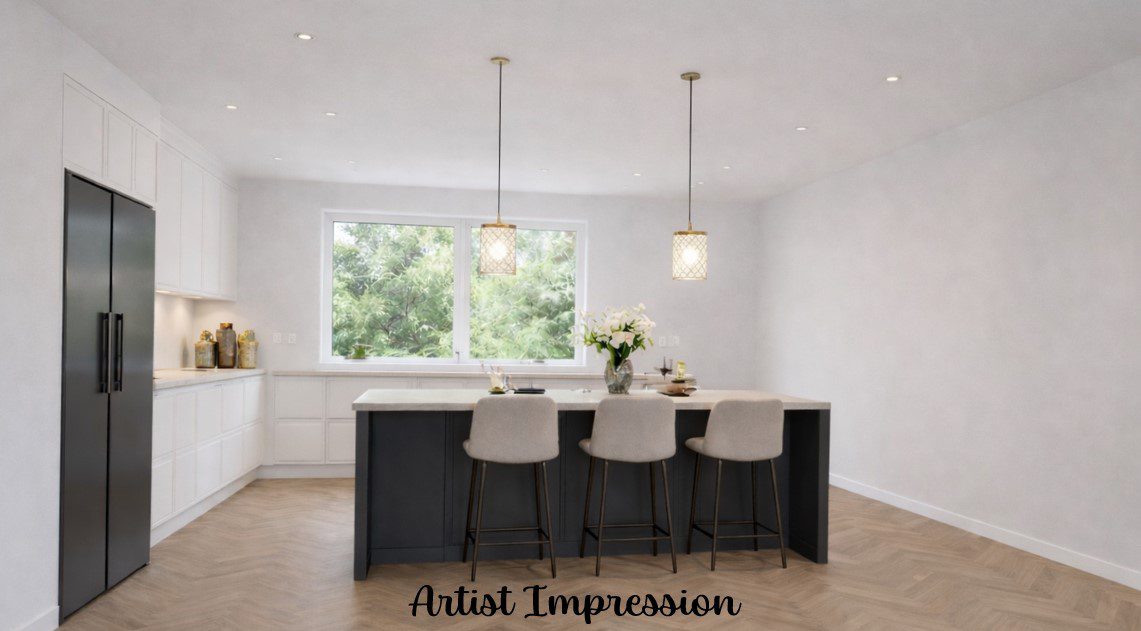 Wie droomt van een grote, sfeervolle woonkeuken kan de keuken eenvoudig betrekken bij de slaapkamer. Door de keuken en de aangrenzende slaapkamer samen te voegen ontstaat een open, uitnodigende leefruimte waar koken, eten en samenzijn centraal staan. Er is volop ruimte voor een moderne keukenopstelling en kookeiland met geïntegreerde eettafel, ideaal voor gezellige diners en bijzondere momenten met familie en vrienden.