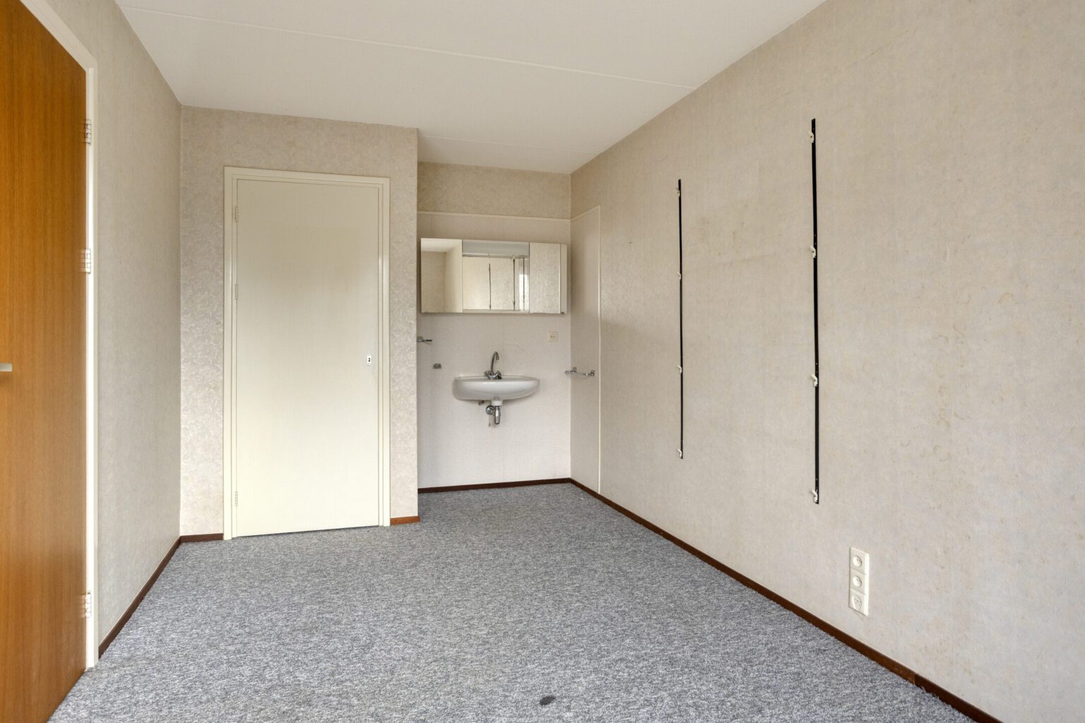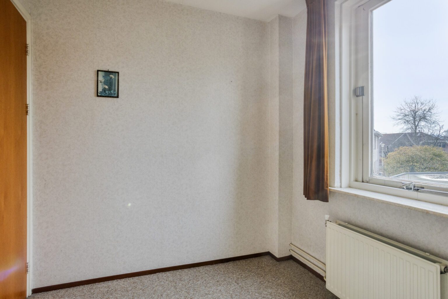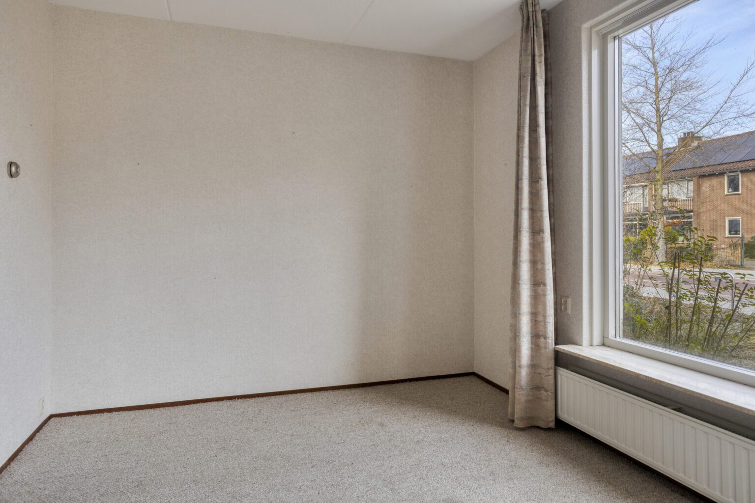 Direct achter de woonkamer grenst een royale slaapkamer. Er is voldoende ruimte voor een tweepersoonsbed, met daarnaast plek voor een kast of bureau. De kamer is rustig gelegen aan de achterzijde van de woning.
