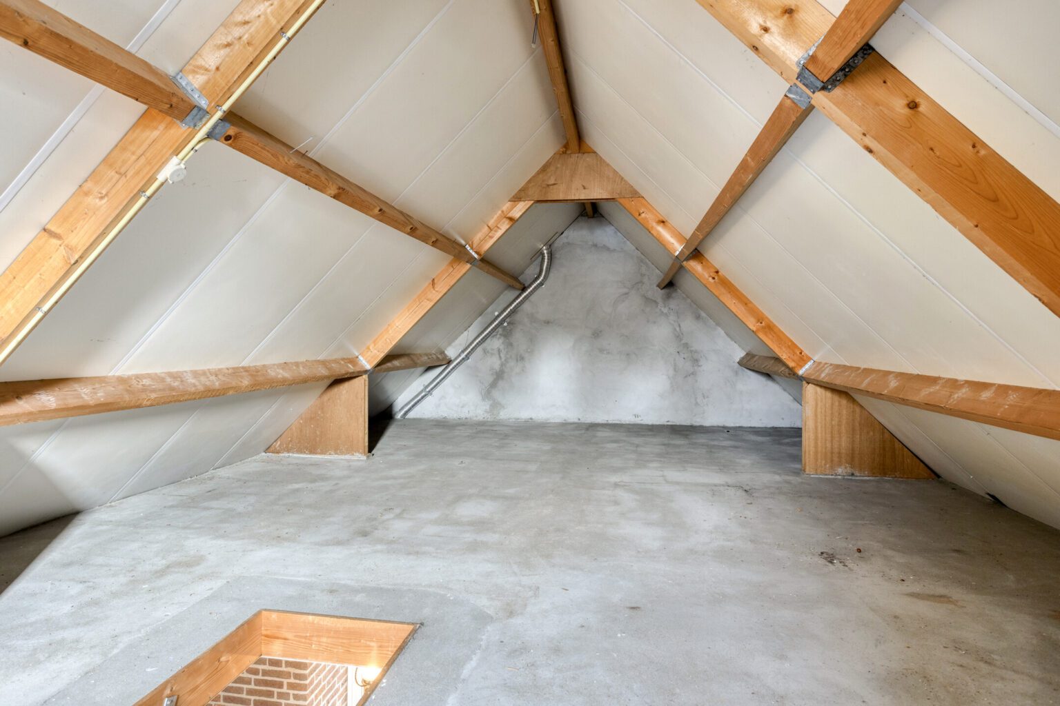 De zolder is enorm groot en te bereiken via de vlizotrap. Wil je nog meer leefruimte? Dan plaats je boven de huidige trap, een vaste trap naar de zolder. Door de steile kap is er voldoende ruimte voor drie extra kamers!
